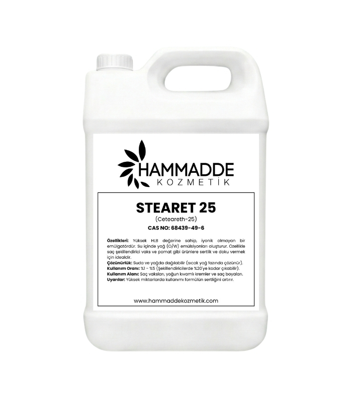 Özellikleri: Yüksek HLB değerine sahip, iyonik olmayan bir emülgatördür. Su içinde yağ (O/W) emülsiyonları oluşturur. Özellikle saç şekillendirici vaks ve pomat gibi ürünlere sertlik ve doku vermek için idealdir.